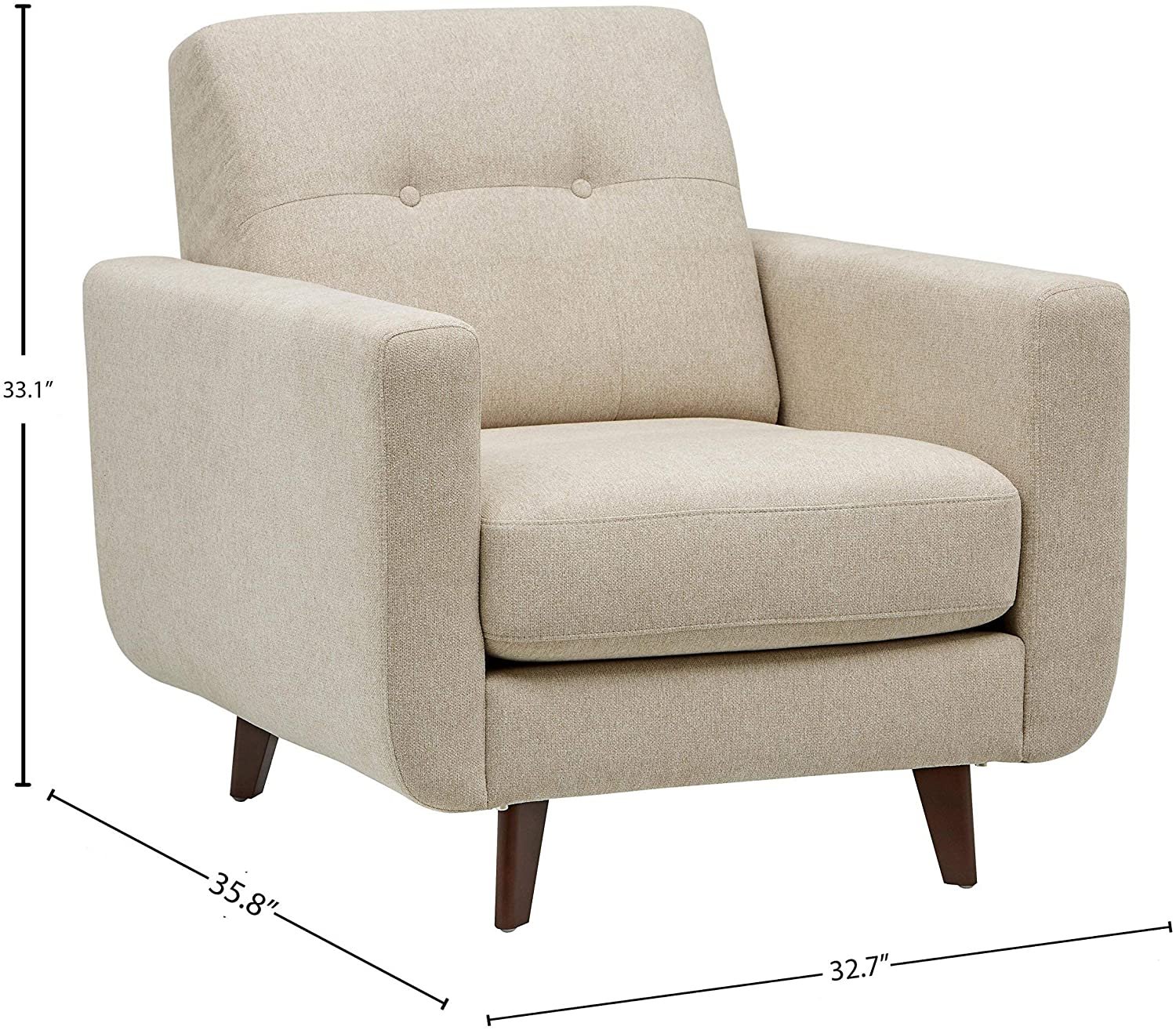 A modern beige armchair designed for everyday comfort, featuring clean lines, plush cushioning, and a compact footprint perfect for any room.