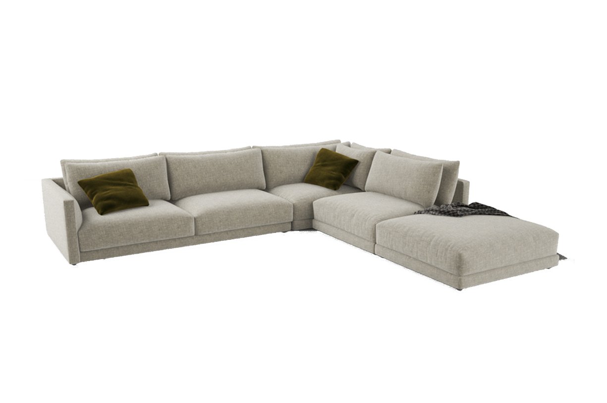 Built on a solid wood frame, it offers lasting durability and spacious seating, making it perfect for families and entertaining guests. The L-shaped configuration fits easily into corners, maximizing your living room space while maintaining a contemporary, luxurious look.