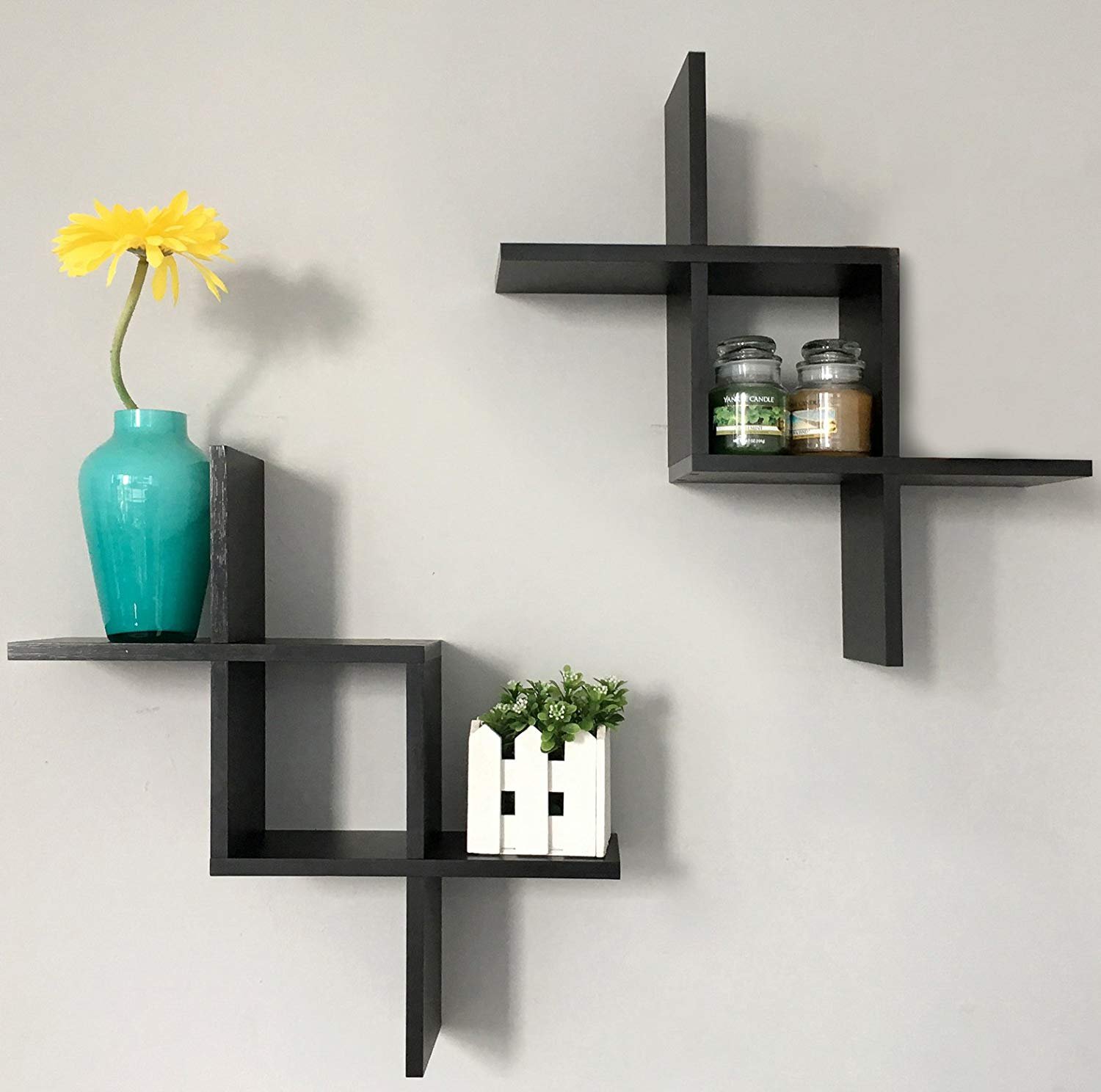 Criss Cross Intersecting Wall Mounted Shelves (set of 2)